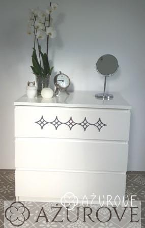 Dzięki niewielkim rozmiarom nasz dekor możesz dopasować do większości mebli, nawet tych o bardzo płytkich szufladach, jak toaletki czy stoliki nocne.