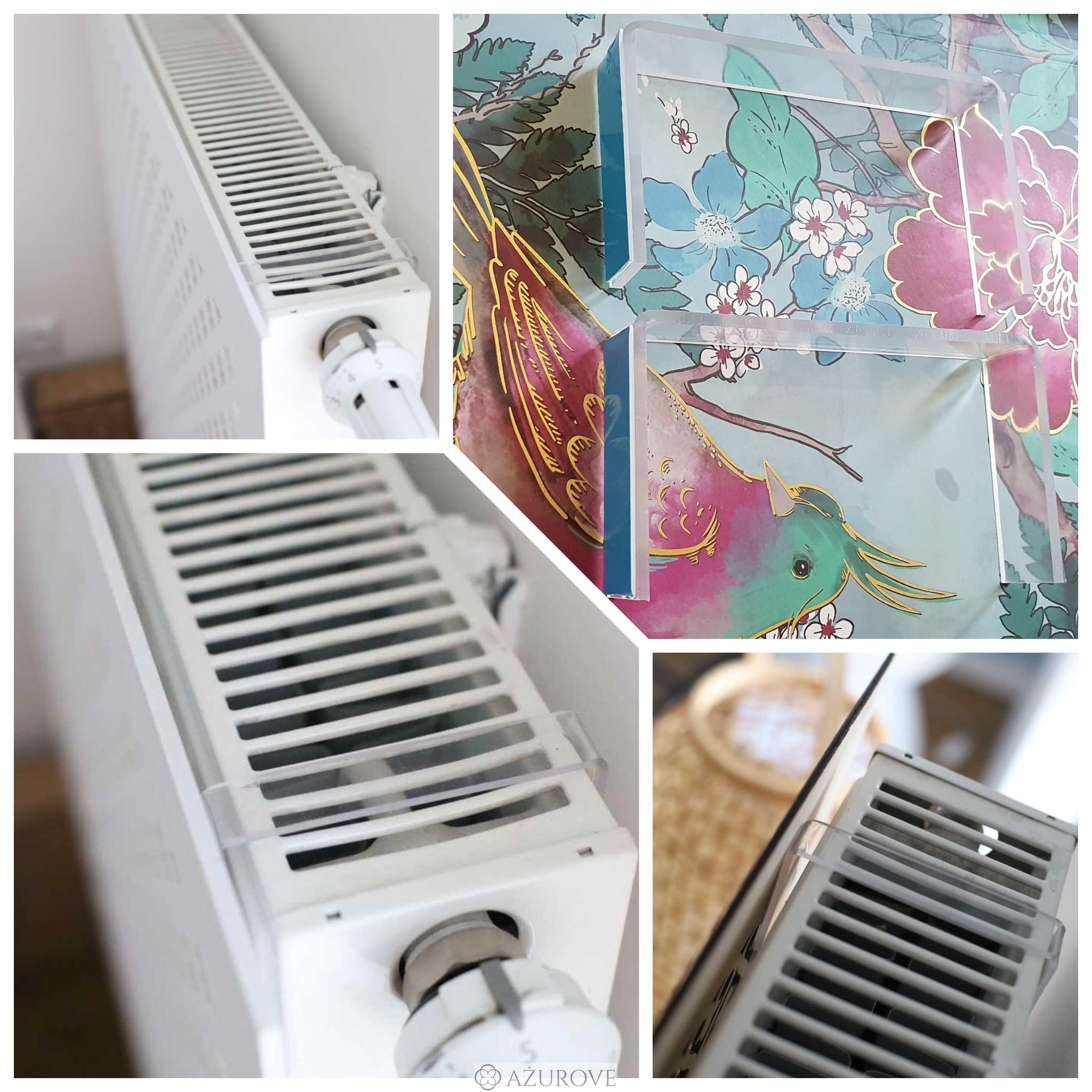 - Za pomocą naszego zestawu montażowego, składającego się z dwóch uchwytów wykonanych z przeźroczystej plexi o grubości 3mm, które przykleja się do panelu a następnie zawiesza na grzejniku. Mocowanie to jest przeznaczone jedynie do grzejników płytowych.