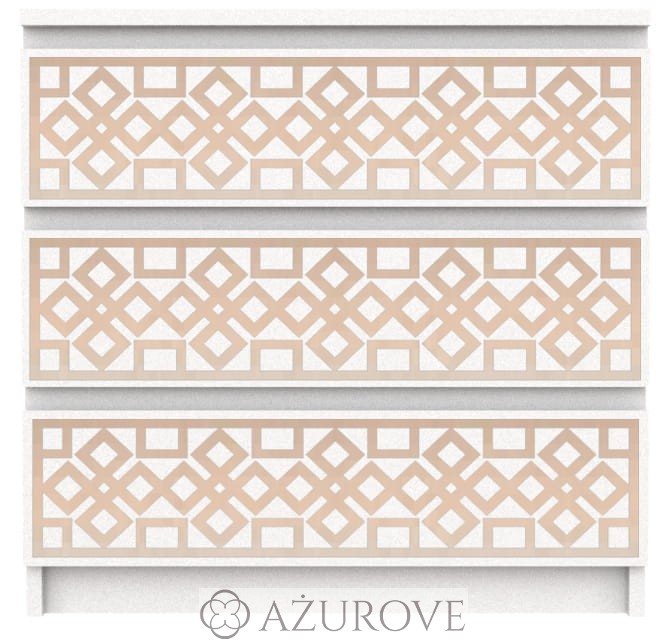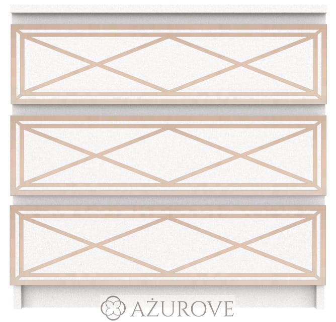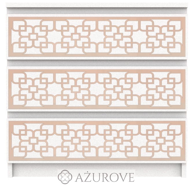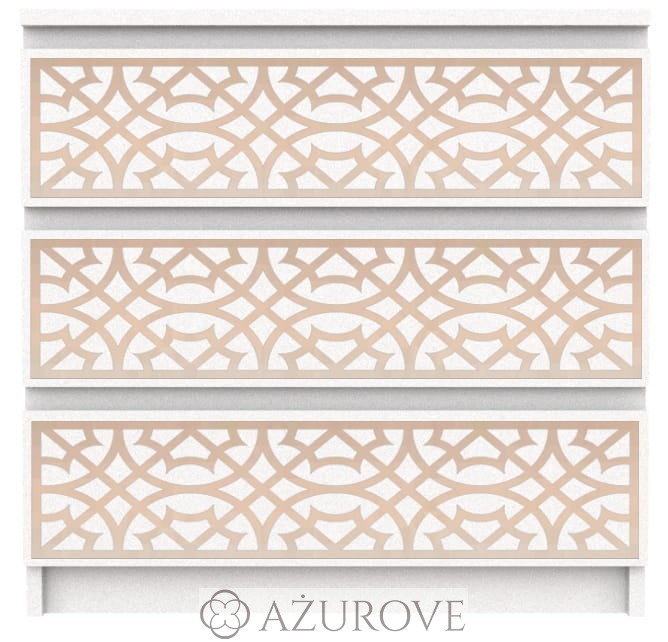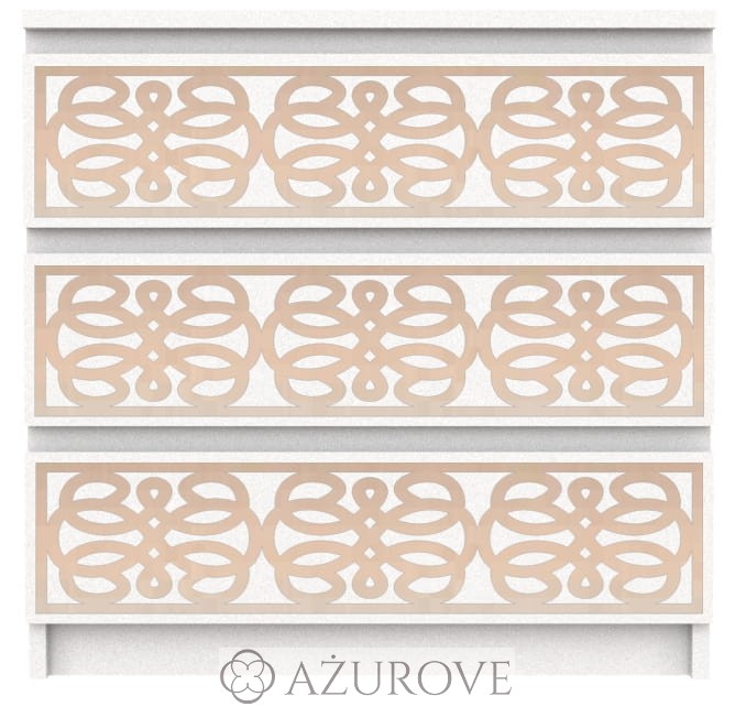 Ażurowy panel dekoracyjny o eleganckim wzorze dopasowany rozmiarem do komody IKEA® MALM z trzema, czterema lub sześcioma szufladami.