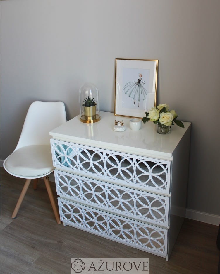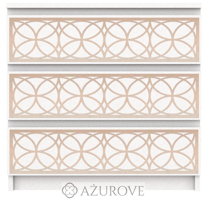 Ażurowy panel dekoracyjny o eleganckim wzorze dopasowany rozmiarem do komody IKEA® MALM z trzema, czterema lub sześcioma szufladami.