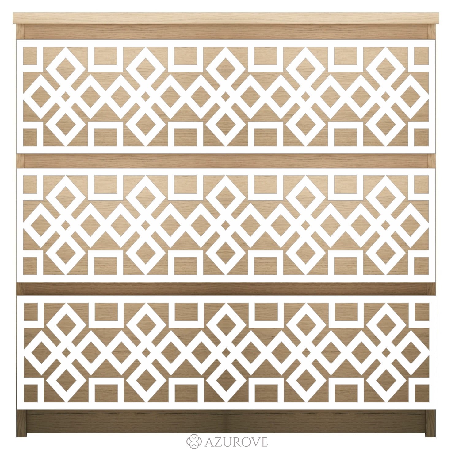 Ażurowy panel dekoracyjny o eleganckim wzorze dopasowany rozmiarem do komody IKEA® MALM z trzema, czterema lub sześcioma szufladami.