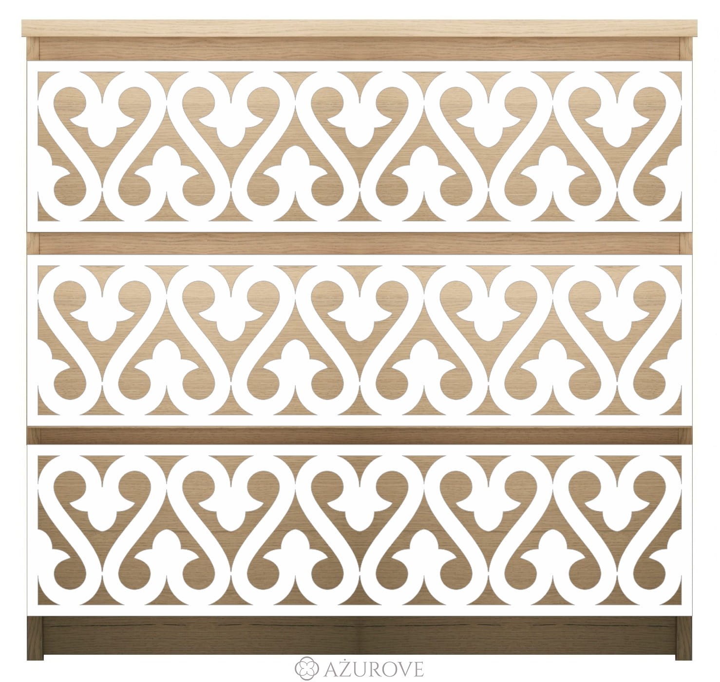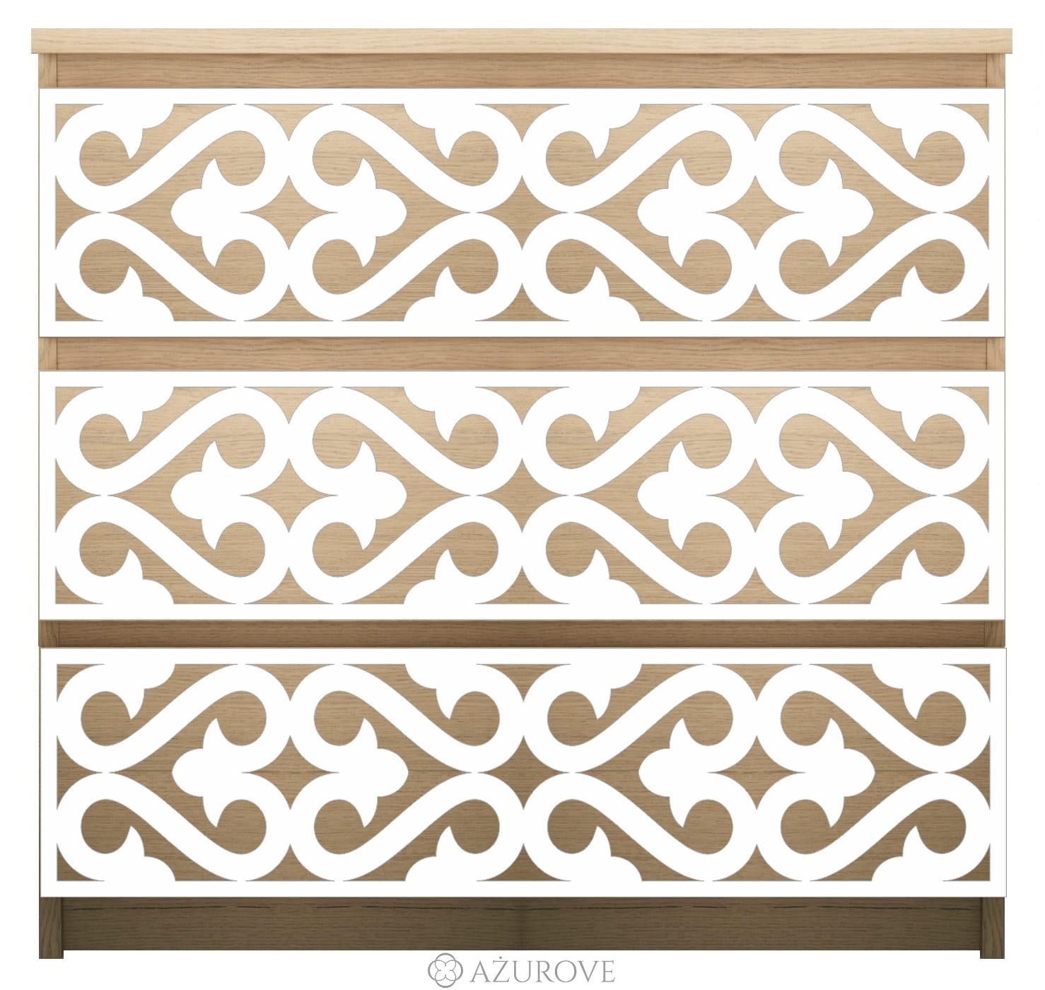 Ażurowy panel dekoracyjny o eleganckim wzorze dopasowany rozmiarem do komody IKEA® MALM z trzema, czterema lub sześcioma szufladami.