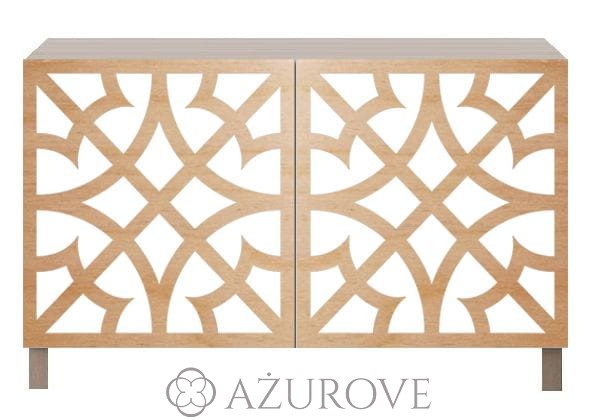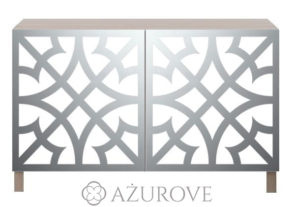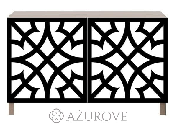 Ażurowy panel dekoracyjny o eleganckim wzorze dopasowany rozmiarem do frontu szafki IKEA® BESTA.