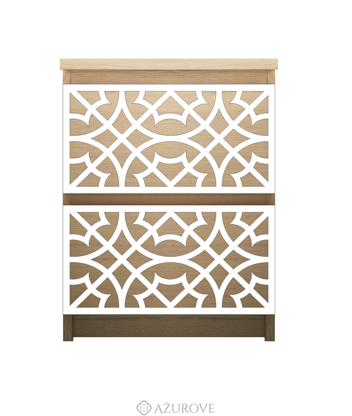 Ażurowy panel dekoracyjny o eleganckim wzorze dopasowany rozmiarem do komody, szafki nocnej IKEA® MALM z dwiema szufaldami.