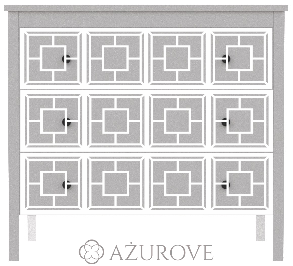 Ażurowy panel dekoracyjny o eleganckim wzorze dopasowany rozmiarem do komody IKEA® KOPPANG z trzema szufladami.