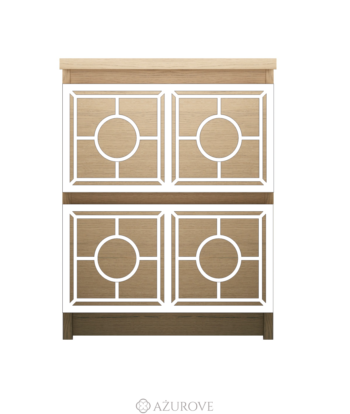 Ażurowy panel dekoracyjny o eleganckim wzorze dopasowany rozmiarem do komody, szafki nocnej IKEA® MALM z dwiema szufaldami.