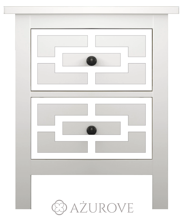 Ażurowy panel dekoracyjny o eleganckim wzorze dopasowany rozmiarem do szafki nocnej IKEA® HEMNES z dwiema szufladami.