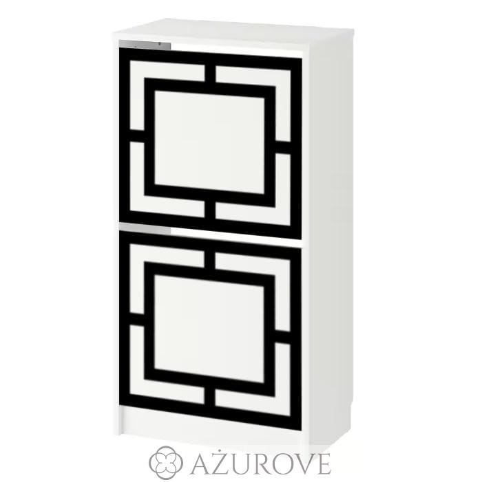 Ażurowy panel dekoracyjny o eleganckim wzorze dopasowany rozmiarem do szafki na buty IKEA® BISSA z dwiema szufladami.