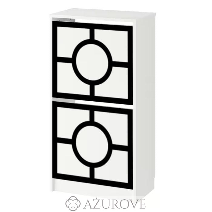 Ażurowy panel dekoracyjny o eleganckim wzorze dopasowany rozmiarem do szafki na buty IKEA® BISSA z dwiema szufladami.