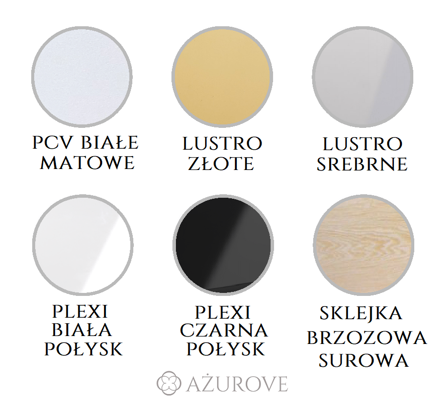 Zaznacz tą opcję, aby zamówić dodatkowo lustro akrylowe srebrne lub złote o wymiarach frontu.