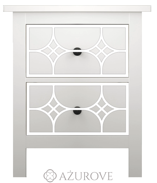 Ażurowy panel dekoracyjny o eleganckim wzorze dopasowany rozmiarem do szafki nocnej IKEA® HEMNES z dwiema szufladami.