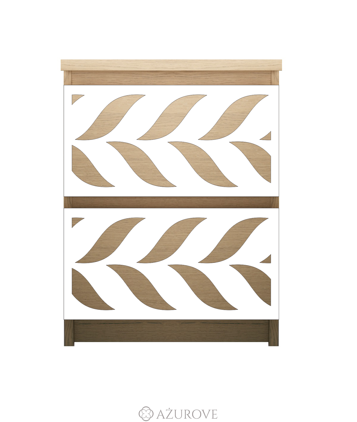 Ażurowy panel dekoracyjny o eleganckim wzorze dopasowany rozmiarem do komody, szafki nocnej IKEA® MALM z dwiema szufladami.