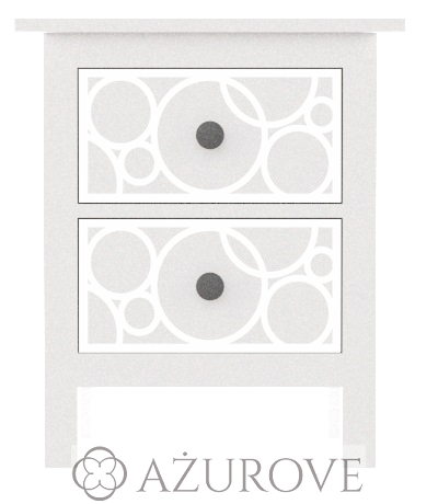 Ażurowy panel dekoracyjny o eleganckim wzorze dopasowany rozmiarem do szafki nocnej IKEA® HEMNES z dwiema szufladami.