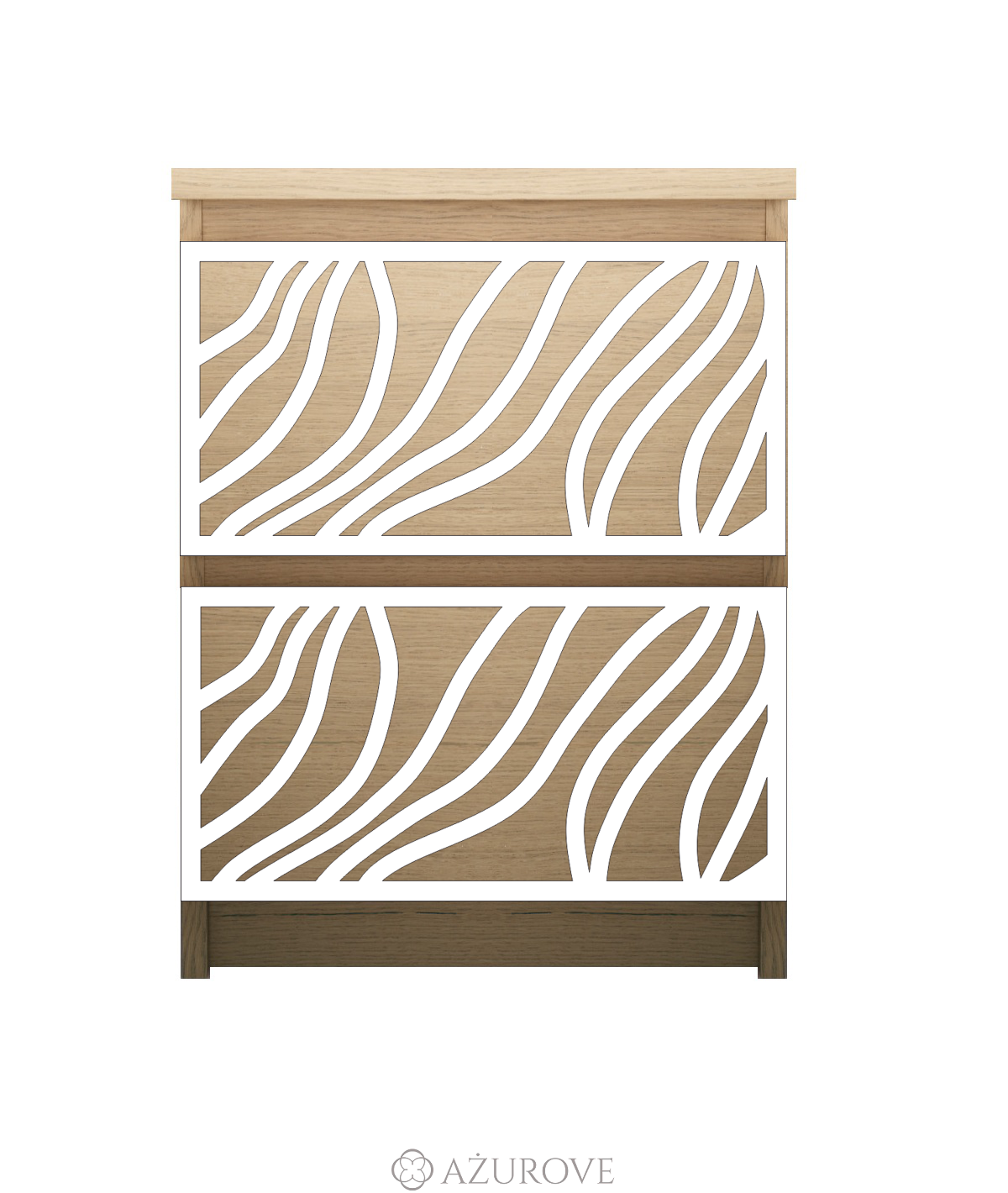 Ażurowy panel dekoracyjny o eleganckim wzorze dopasowany rozmiarem do komody, szafki nocnej IKEA® MALM z dwiema szufladami.