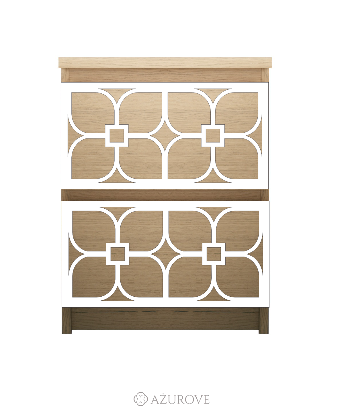 Ażurowy panel dekoracyjny o eleganckim wzorze dopasowany rozmiarem do komody, szafki nocnej IKEA® MALM z dwiema szufladami.