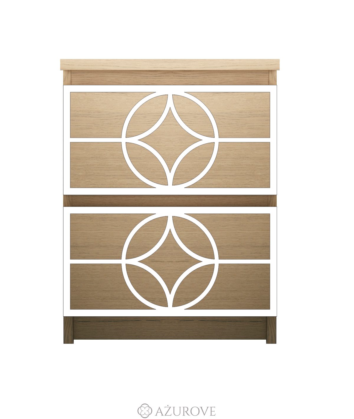 Ażurowy panel dekoracyjny o eleganckim wzorze dopasowany rozmiarem do komody, szafki nocnej IKEA® MALM z dwiema szufladami.