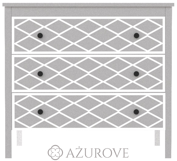 Ażurowy panel dekoracyjny o eleganckim wzorze dopasowany rozmiarem do komody IKEA® KOPPANG z trzema szufladami.