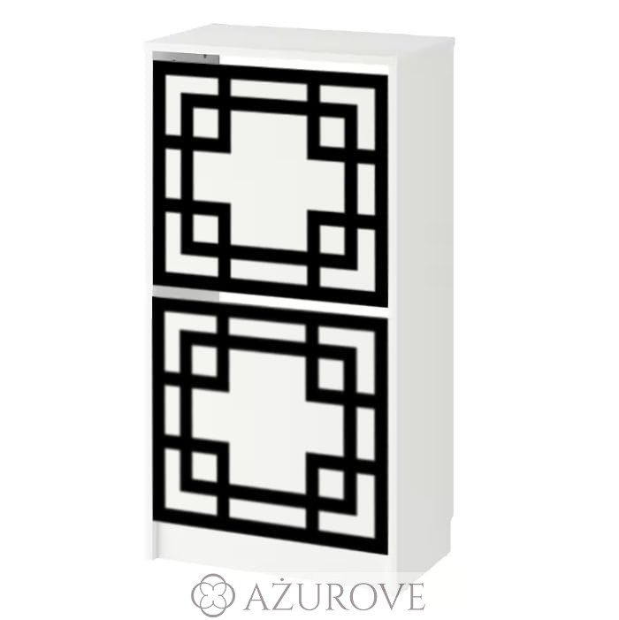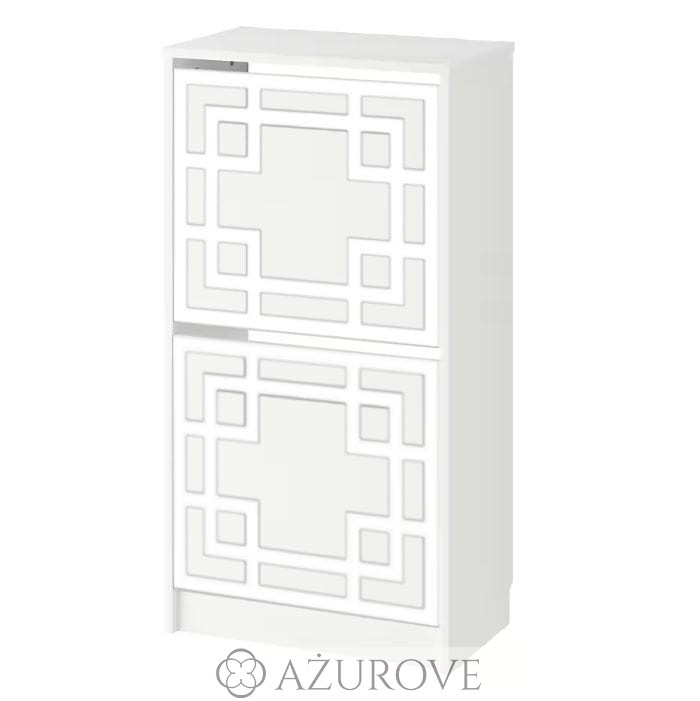 Ażurowy panel dekoracyjny o eleganckim wzorze dopasowany rozmiarem do szafki na buty IKEA® BISSA z dwiema szufladami.