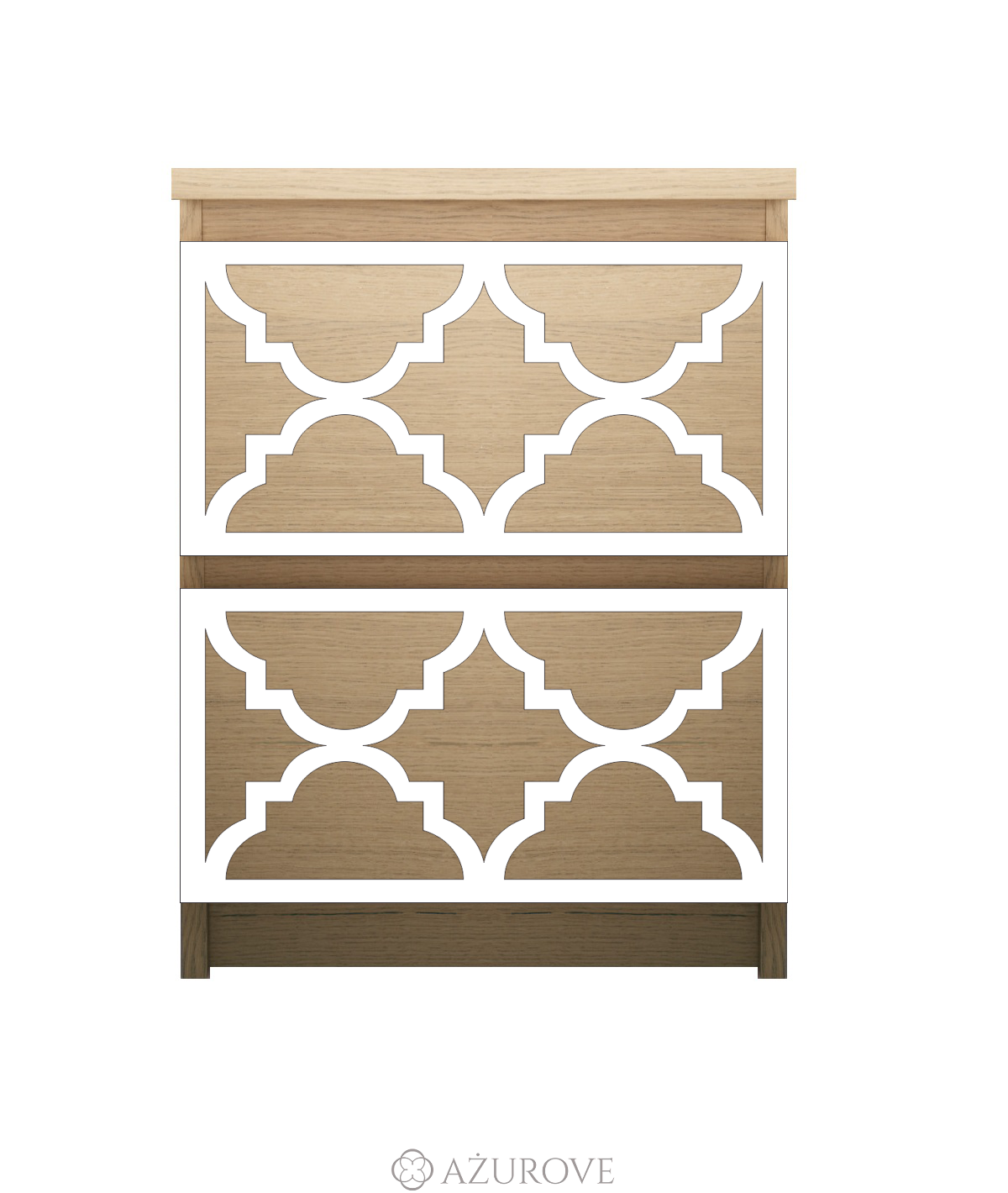 Ażurowy panel dekoracyjny o eleganckim wzorze dopasowany rozmiarem do komody, szafki nocnej IKEA® MALM z dwiema szufladami.