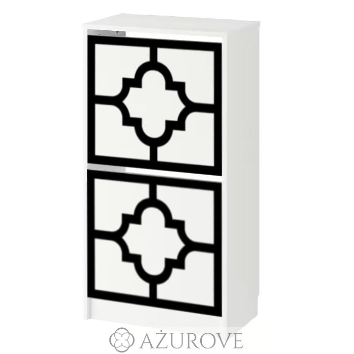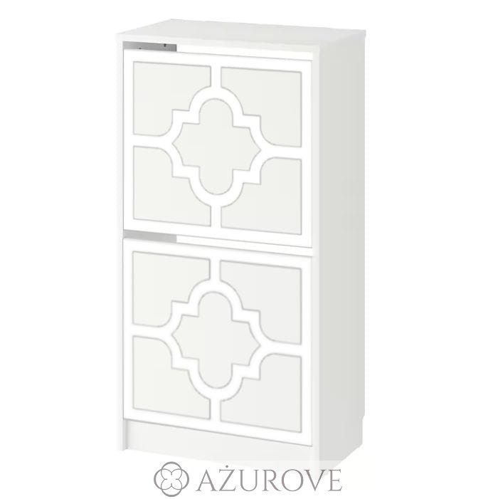 Ażurowy panel dekoracyjny o eleganckim wzorze dopasowany rozmiarem do szafki na buty IKEA® BISSA z dwiema szufladami.
