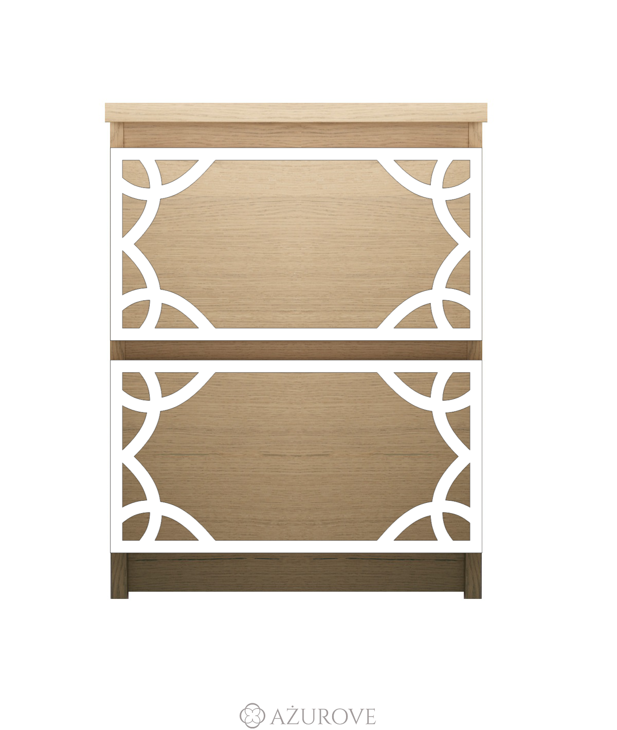 Ażurowy panel dekoracyjny o eleganckim wzorze dopasowany rozmiarem do komody, szafki nocnej IKEA® MALM z dwiema szufladami.