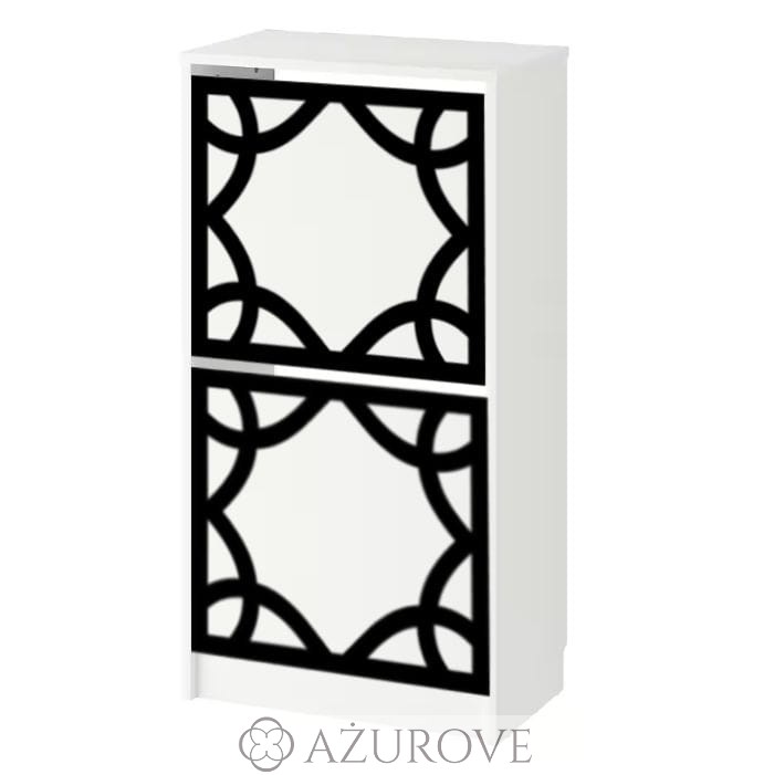 Ażurowy panel dekoracyjny o eleganckim wzorze dopasowany rozmiarem do szafki na buty IKEA® BISSA z dwiema szufladami.