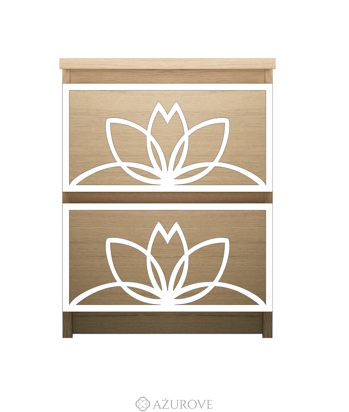 Ażurowy panel dekoracyjny o eleganckim wzorze dopasowany rozmiarem do komody, szafki nocnej IKEA® MALM z dwiema szufladami.