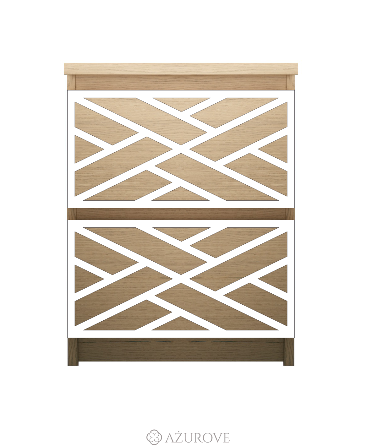 Ażurowy panel dekoracyjny o eleganckim wzorze dopasowany rozmiarem do komody, szafki nocnej IKEA® MALM z dwiema szufladami.