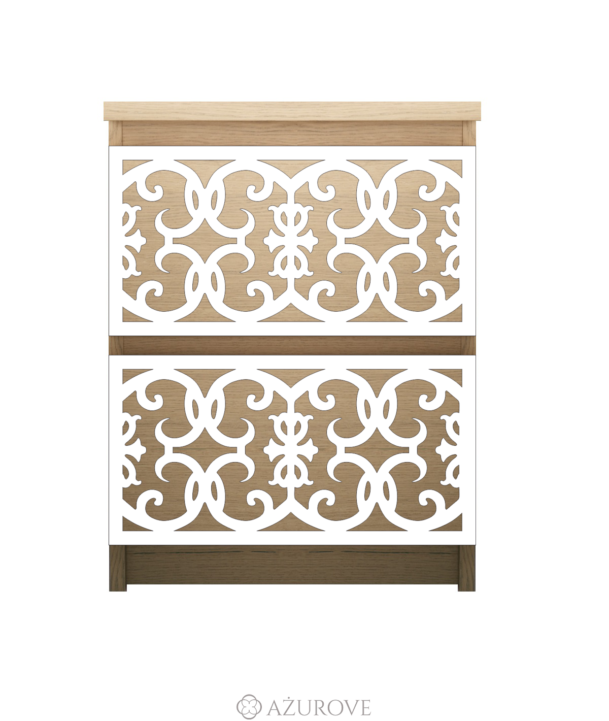 Ażurowy panel dekoracyjny o eleganckim wzorze dopasowany rozmiarem do komody, szafki nocnej IKEA® MALM z dwiema szufladami.